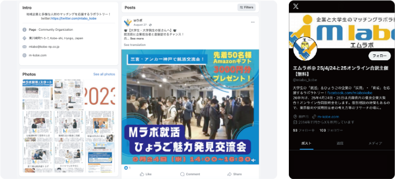 Mラボ就活は、兵庫県内の優良企業や隠れた魅力あるBtoB企業の情報などを発信し、県内企業と大学生の就職マッチングを目指します。