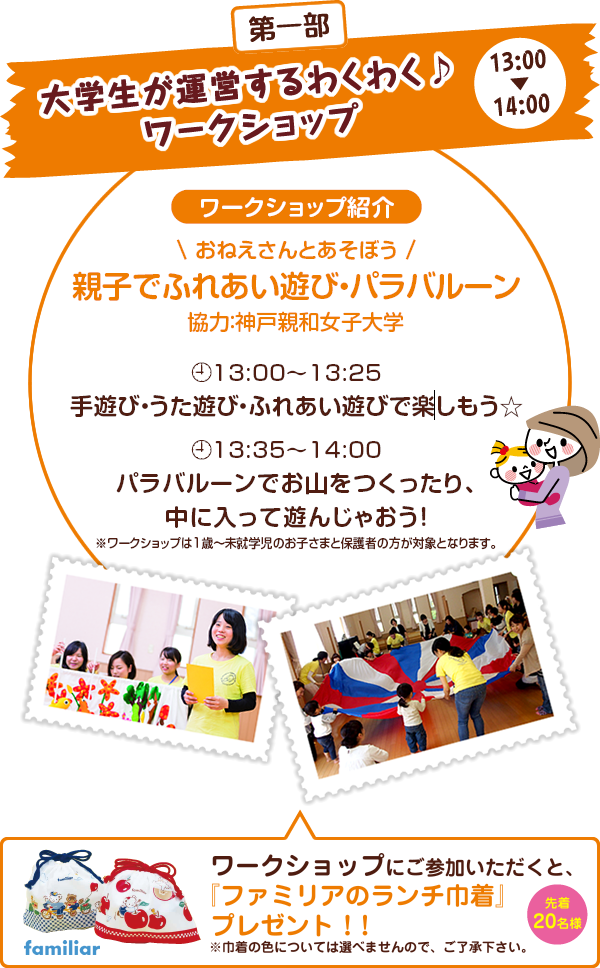 第1部の神戸親和女子大学の学生による親子向けワークショップは大盛況!