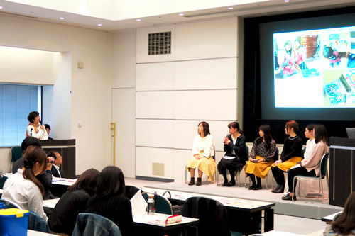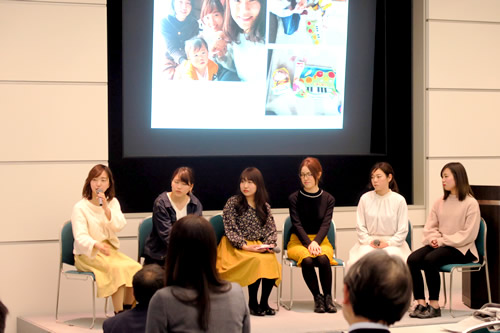 阪神沿線の子育て家庭向け情報誌「KID’S SMILE」の制作に共同で取り組まれている阪神電鉄と武庫川女子大学のみなさまには、今回ご協力いただいた冊子特集企画「女子大生と現役ママたちのReal Talk!」の制作裏話をお話しいただきました。
