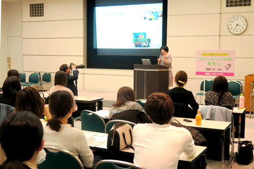 フォーラム第一部のわくわくワークショップにご協力いただいた神戸親和女子大学様には、今年10周年を迎えた「子育て支援センターすくすく」と本事業の感想についてお話しいただきました。