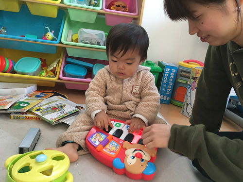 とても楽しかったです。人見知りをする年齢だったため、最初は少し難しかった。しかし、お母さんがいたということもあって、最後の帰りの頃には、笑顔も見せてくれるようになった。ただ、やはりお母さんがいないと不安な様子だった。