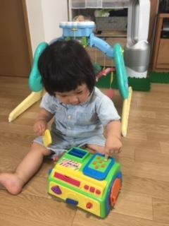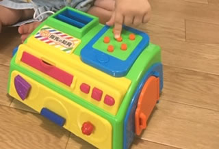 指先を使う知育に適したおもちゃをもっていきました。音が鳴るおもちゃが好き、というお話をお伺いしていたので、紐を引っ張ると音が鳴るようなおもちゃにしました。また、リモコンのボタンを押して遊んだりしている、という話もあったので、ボタンがついているものを選びました。