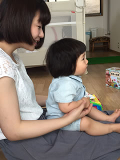 持っていったおもちゃや、もともとご家庭にあったおもちゃを使って遊びました。ボタンを押したり、紐を引っ張ったりするおもちゃで、指先を使って遊びました。また、お母さんがしまじろうのビデオをかけて下さりました。その中で親子で音楽に合わせて遊ぶものがあったので、それに合わせて一緒に遊んだりしました。帰る前に、お子さんの食事の時間だったので、そのお手伝いをしたりしました。