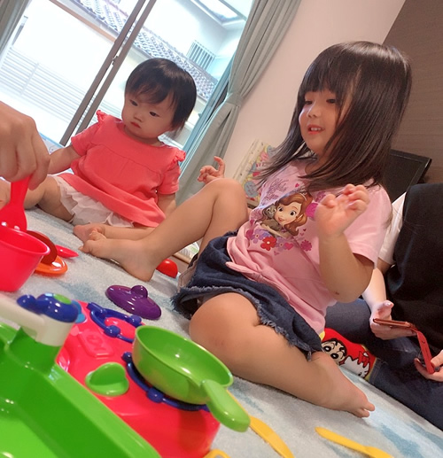 やはり、子どもはかわいいなと思った。姉妹、仲が良くていいなと思った。キッチンセットで、ご飯を作って、ごちそうしてくれて嬉しかった。泣いちゃうかなと思ったけど、懐いてくれて嬉しかった。