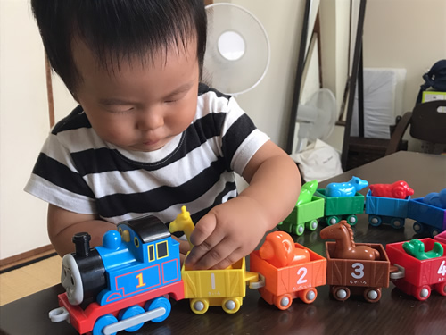 「トーマスの10までつなげて」と「アンパンマンのぬりえ」を持参しました。男の子ということもあり、乗り物全般に興味を示してくれるのかな?と思いこのおもちゃを選びました。プレゼントしてみると凄く喜んでくれて、終始笑顔が絶えませんでした。相当気に入ってくれた様子でした!