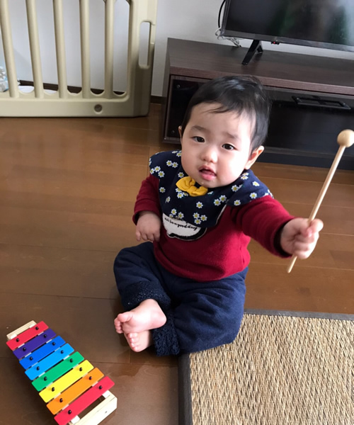 まずは、プレゼントで遊びました。2歳の子には絵本の読み聞かせをし、1歳の子とはシロフォン(おもちゃの木琴)で遊びました。その後、2歳の子とは、クリスマスプレゼントのアンパンマンのコロコロパン工場で遊びました。11時頃におやつをみんなで食べた後、サンドイッチを作るおもちゃでお店屋さんごっこをしました。また、シロフォンやおもちゃのピアノで音を出して、大きな栗の木の下でを踊ったりパプリカを踊ったりしました。その後、昼食を一緒に食べさせて頂き、ご夫婦とお話ししました。昼食後には写真を撮らせて頂いて、最後に少し遊び、お別れしました。