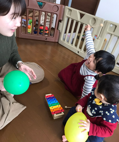 初めから人見知りせず、キラキラした目で迎えてくれて、「お姉さん達が来るのを楽しみにしていました」と言ってくれて、なんて純粋で素敵な子なんだと思いました。色んなおもちゃで遊んだり、お話ししたりと、本当に楽しそうな表情を見ることができ、こちらもとても嬉しく感じました。2歳の子は様々な見立てをして、遊びにストーリーがありとても想像力豊かだなと感じました。ご両親がその子のストーリーにきちんと答えていて、だからこそなんだと思いました。