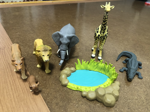 動物のおもちゃがないということだったので、少しでも長く遊んでもらえるように少しリアルな動物のフィギュア。ワニがリアルすぎて怖がっていましたが、それ以外は気に入って手に取って遊んでいた。