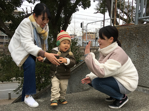 いつもは人見知りが激しいと聞いていたので覚悟していましたが、泣くことはなく笑顔で関わることができた。子どもの目線で話すことで心を開いてくれた。可愛い。想像以上に自分でできることが多かった。