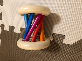 木で作られた、木独自の温もりがあり、舐めても安全で赤ちゃんが握って触覚を刺激でき、転がすとカラフルに塗られた面が虹色を描く、見ている大人も楽しいおもちゃを持参しました。子どもさんもとても気に入ってくれたようで、お母さんが貸してといってもなかなか離してないほどでした。嬉しそうにおもちゃを持ってフリフリしていました。