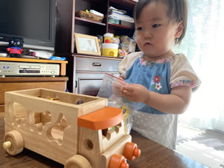 「型はめ」をすることが好きだと聞いたので、型はめができるおもちゃを持っていきました。